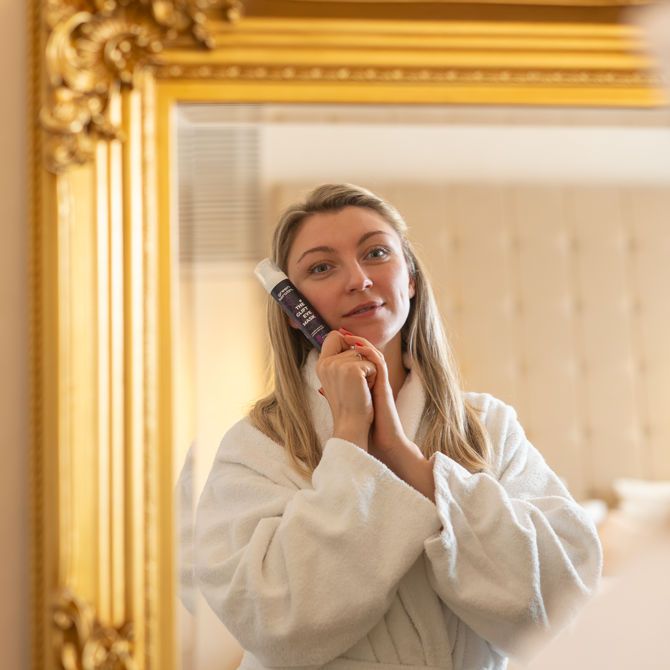 Appliquer généreusement autour des yeux en tapotant délicatement avec l’annulaire. Laisser poser toute la nuit. Rincer le matin. Utiliser en dernière étape de la routine, tous les soirs.
