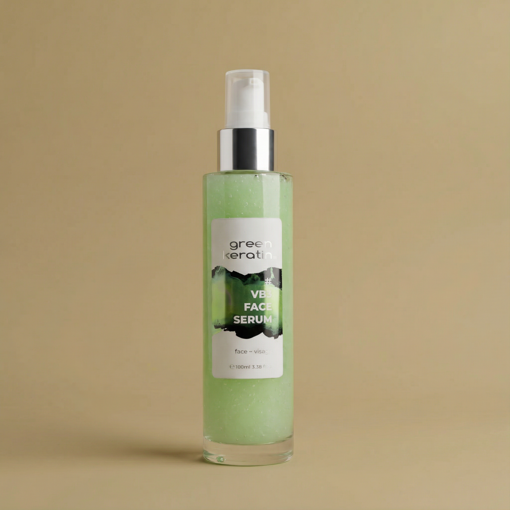 Les flocons blancs du sérum sont le Hyacollagreen encapsulé (collagène végétalien + acide hyaluronique)