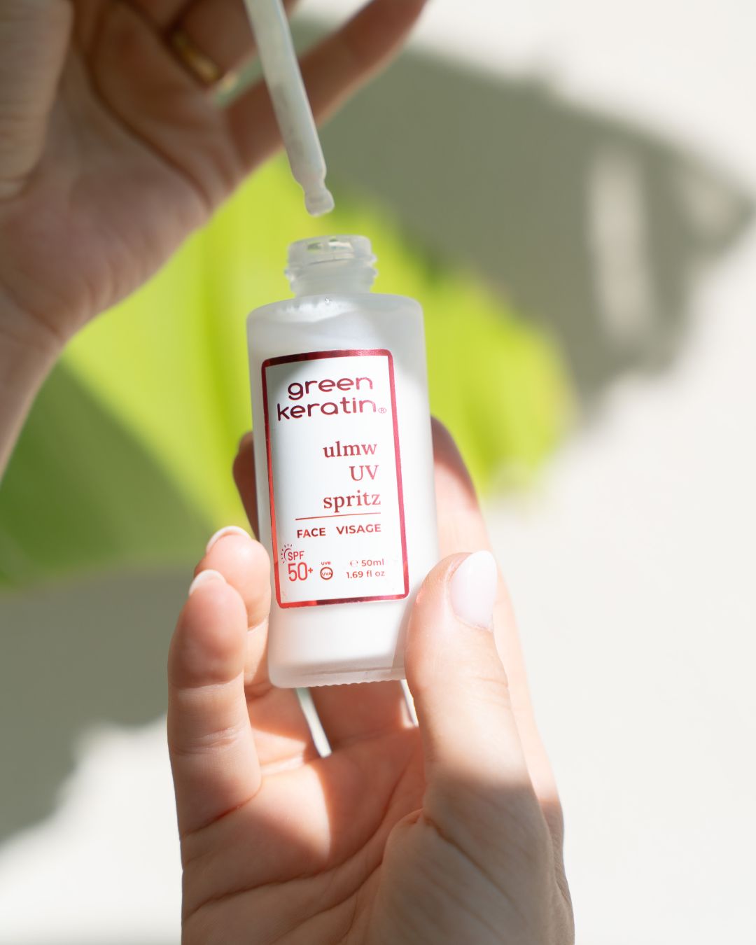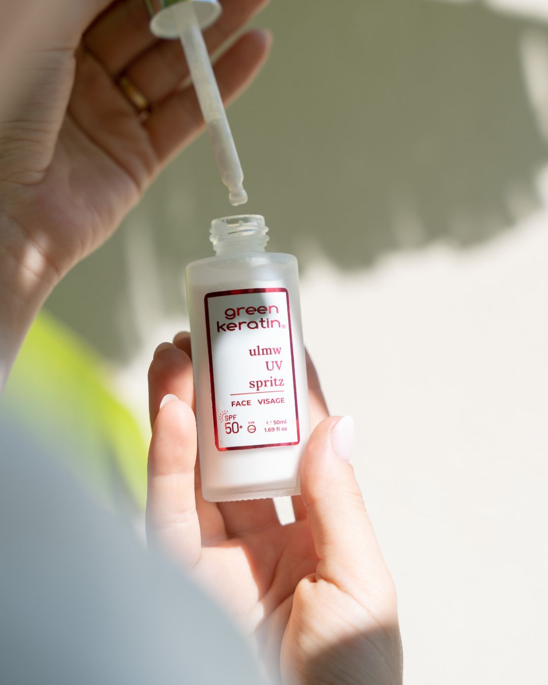 ULMW UV Spritz est une essence fluide ultra-légère, délivrée par pipette, qui s’applique comme un soin pour protéger la peau au quotidien. Sa texture soyeuse et non grasse fond sur la peau sans laisser de trace blanche, ni d’effet collant.