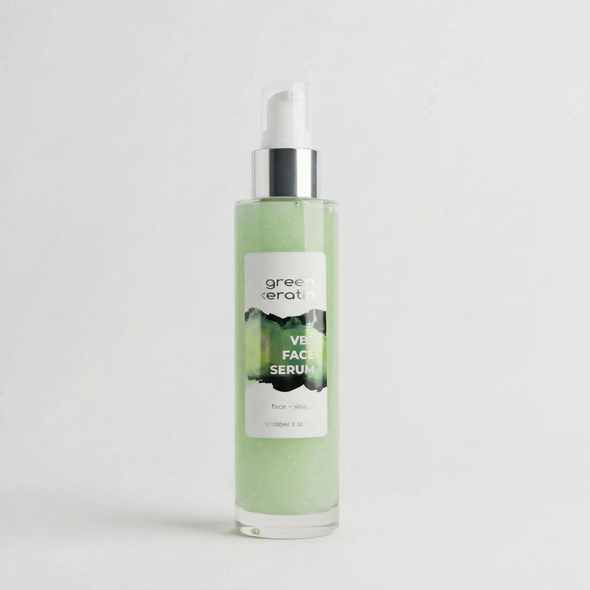 Les flocons blancs du sérum sont le Hyacollagreen encapsulé (collagène végétalien + acide hyaluronique)